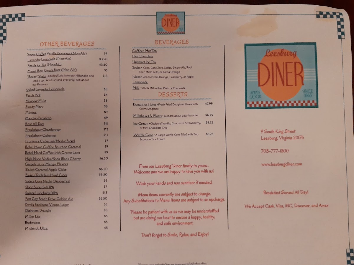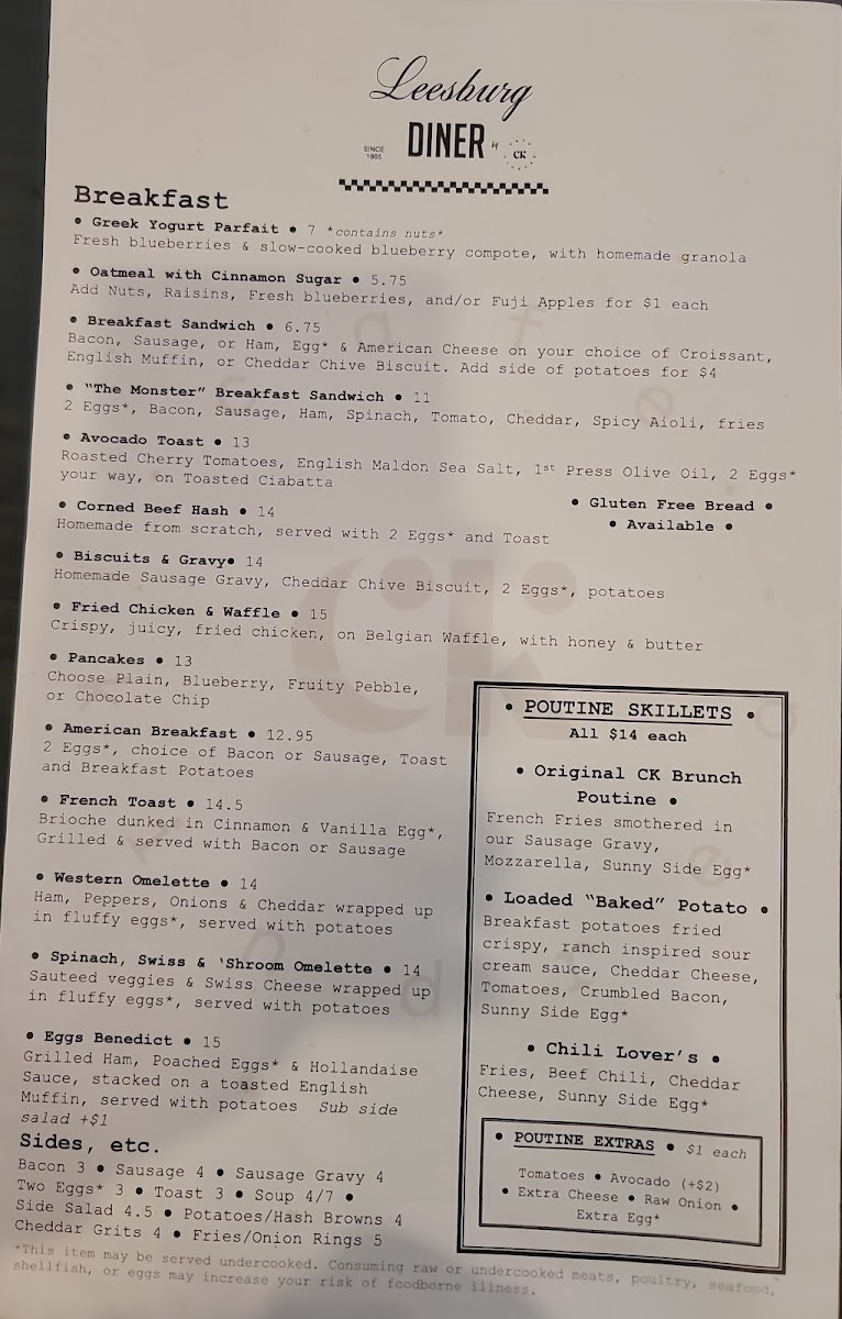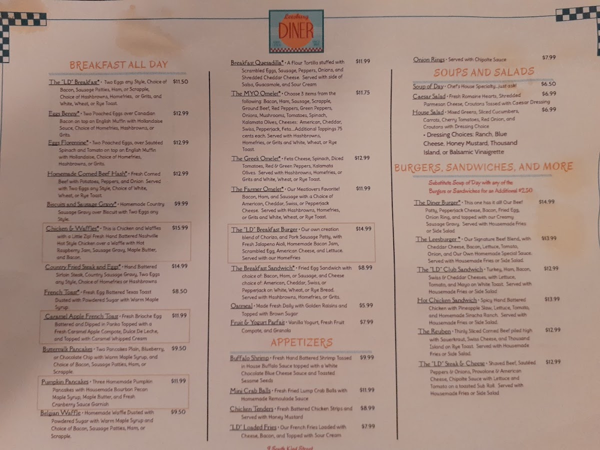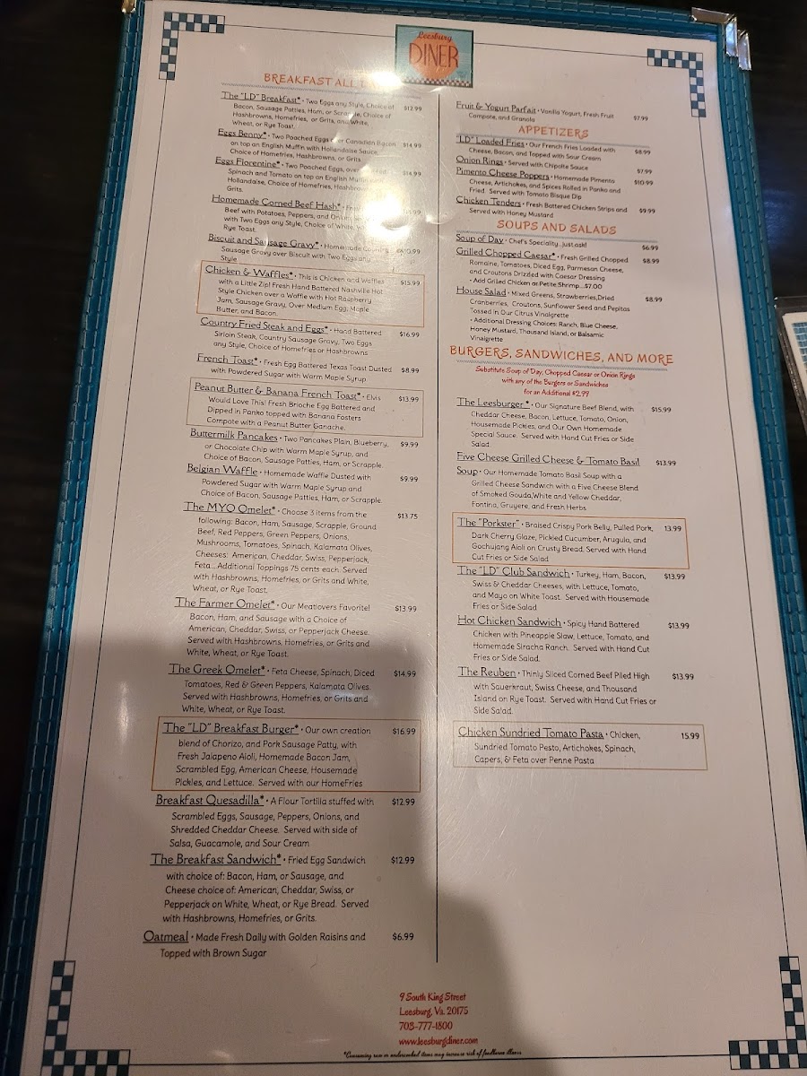 Welcome to Leesburg Diner, a charming eatery nestled in the heart of downtown Leesburg, Virginia. Located at 9 S King St, this diner is a delightful destination for breakfast lovers. The menu showcases a variety of American classics, from the indulgent French Toast and Chicken & Waffles to the savory Eggs Benedict and unique Chilli Lovers Poutine.