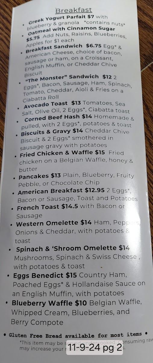 Each dish is crafted with care, ensuring flavor and satisfaction. A standout is the Monster Breakfast Sandwich, which locals rave about. For a lighter option, consider the Greek Yogurt Parfait or the classic Oatmeal.